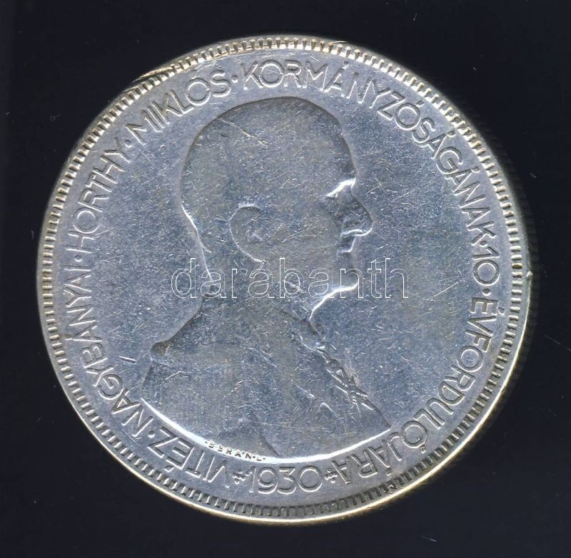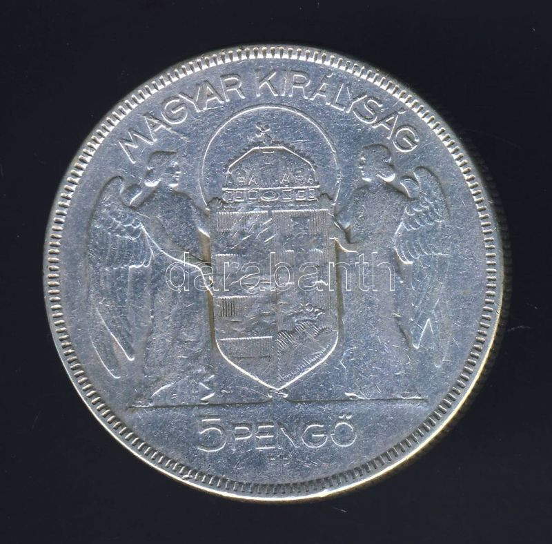 https://www.darabanth.com/en/133-Online-auction/133.0/Numismatics/Coins-with-Hungarian-Mintmark~400142/1930-5P-Ag-Horthy-jobbra-T3-ph~II380370