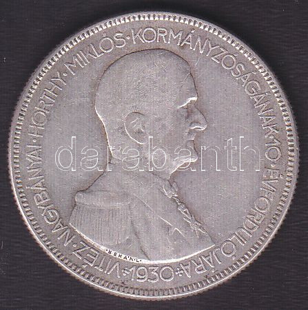 https://www.darabanth.com/en/133-Online-auction/133.0/Numismatics/Coins-with-Hungarian-Mintmark~400142/1930-5P-Ag-Horthy-jobbra-T3~II382334