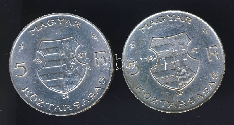 https://www.darabanth.com/en/133-Online-auction/133.0/Numismatics/Coins-with-Hungarian-Mintmark~400142/1947-5Ft-Ag-Kossuth-2x-T2-2-~II380380