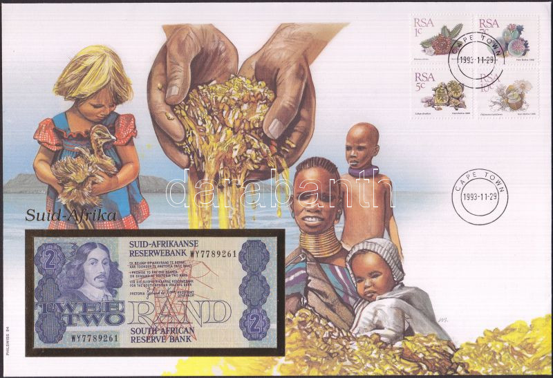 Dél-Afrika 1981-83. 2R dekoratív nagyalakú bélyeges, bankjegyes boríté...