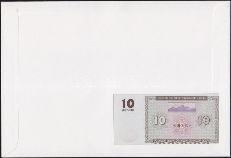 Moldova 1992. 1L dekoratív, nagyalakú bankjegyes, bélyeges borítékon T:I + Örményország 1993. 10D dekoratív, nagyalakú bankjegyes, bélyeges borítékon T:I
