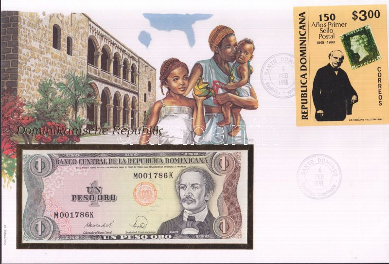 St.Thomas & Prince 1989. 100D dekoratív, nagyalakú bankjegyes, bélyeges borítékon, bélyegblokkal T:I + Dominikai Köztársaság 1988. 1P dekoratív, nagyalakú bankjegyes, bélyeges borítékon, bélyegblokkal T:I