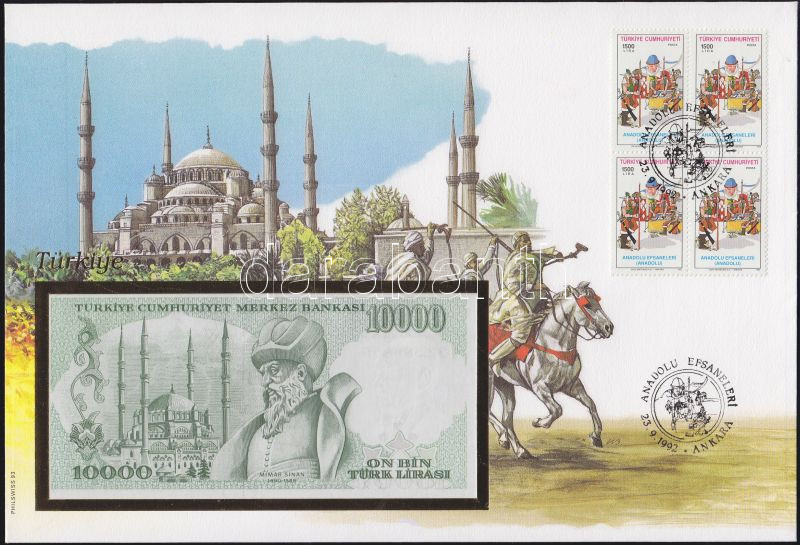 Törökország 1970. 10000L dekoratív, nagyalakú bélyeges, bankjegyes borítékon T:I