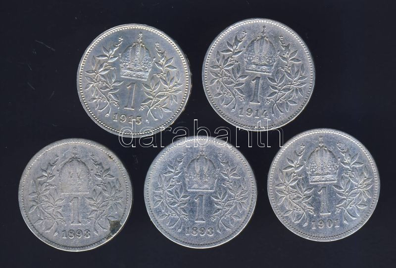 Ausztria 1893-1915. 1K Ag (5x) 4klf évszámmal T:1/1-,2,3