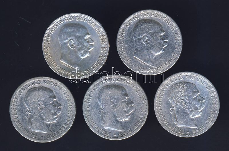 https://www.darabanth.com/en/133-Online-auction/133.0/Numismatics/Foreign-Coins~400135/Ausztria-1893-1915-1K-Ag-5x-4klf-evszammal-T11-2-3~II380462