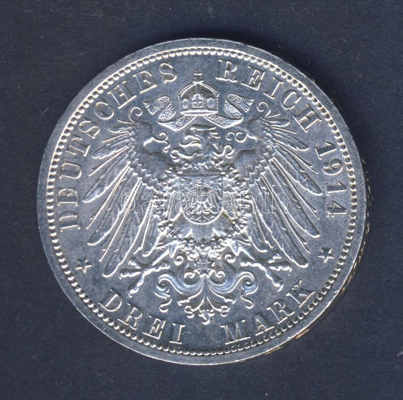 https://www.darabanth.com/en/133-Online-auction/133.0/Numismatics/Foreign-Coins~400135/Nemet-BirodalomCsaszarsagPoroszorszag-1914-3M-Ag-Wilhelm-II-uniformisban-T2plus-apro-ph~II382479