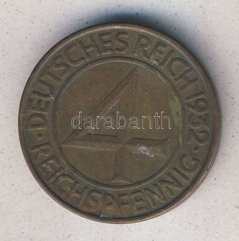 https://www.darabanth.com/en/133-Online-auction/133.0/Numismatics/Foreign-Coins~400135/Nemet-BirodalomWeimari-Koztarsasag-1932A-4Pf-T3~II380173