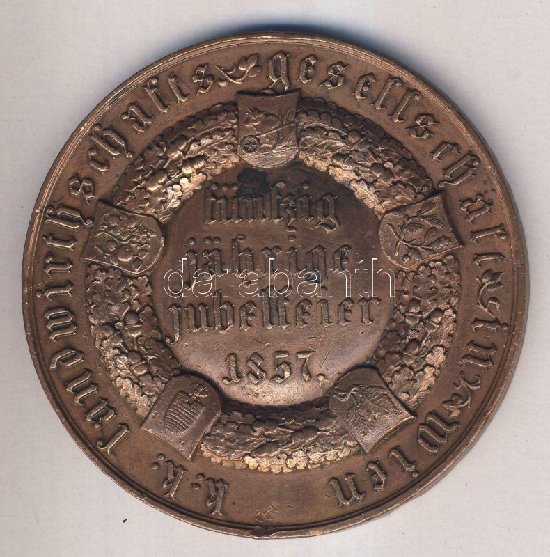 1857 "kk. Landwirtschafts Gesellschaft Wien" Mezőgazdasági Társaság 50. éves fennállása bronz emlékérem d:7cm T: 2