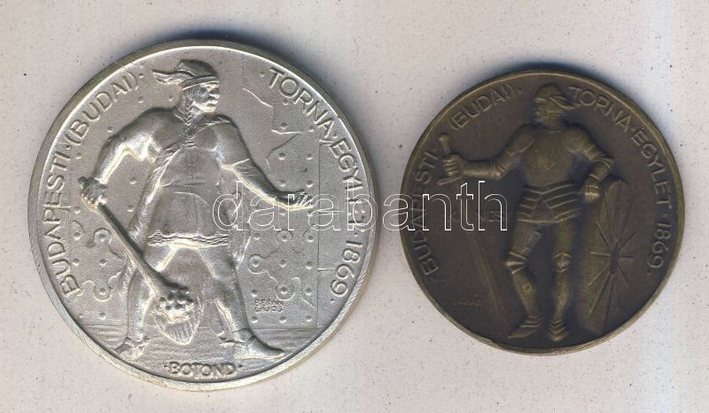 1869. "Budapesti (Budai) Torna Egylet" 2 klf (Botond éd Kinizsi) nagyságú és ábrázolású Br és fém emlékérem. Szign:Berán T:2