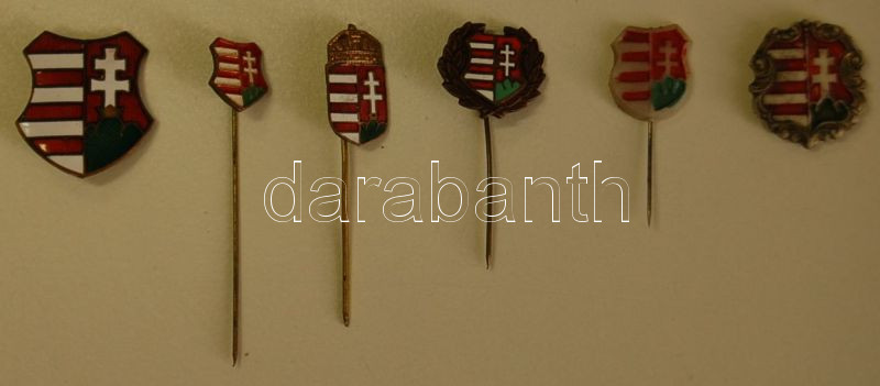 kis kitűző tétel: 6db magyar címeres kitűző, köztük 5db "Kossuth címer...