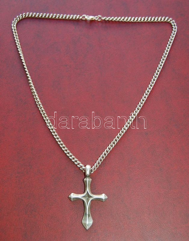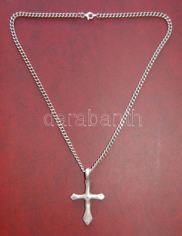 Ezüst (Ag) Art deco lánc kereszt medállal 32,8 gr