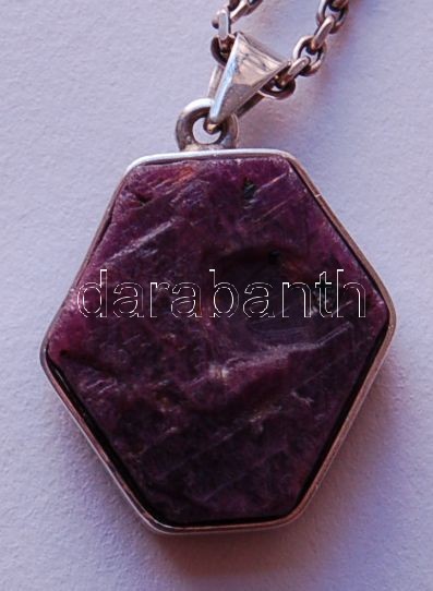 Ezüst (Ag) nyaklánc Sri Lanka-i nyers rubin (~100K) medállal 36,1 gr
