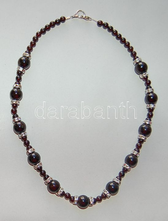 Gránát nyaklánc strassztárcsákkal ezüst (Ag) szerelékkel