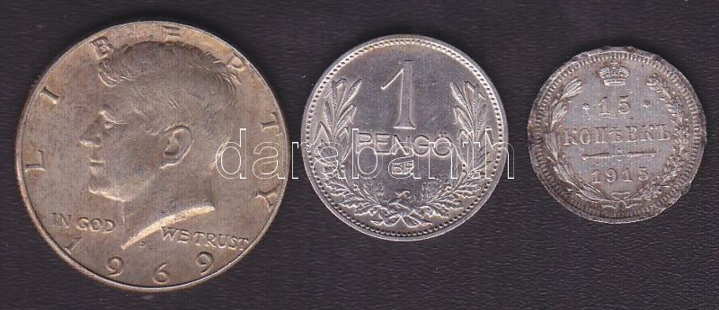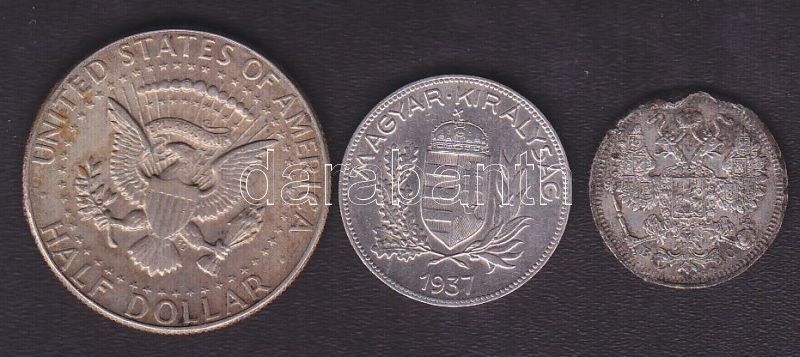 Kis ezüst tétel: 1937. 1P Ag T:2+ + Cári Oroszország 1915. 15k Ag T:3 ph. + 1969D 1/2$ "Kennedy" Ag T:3+
