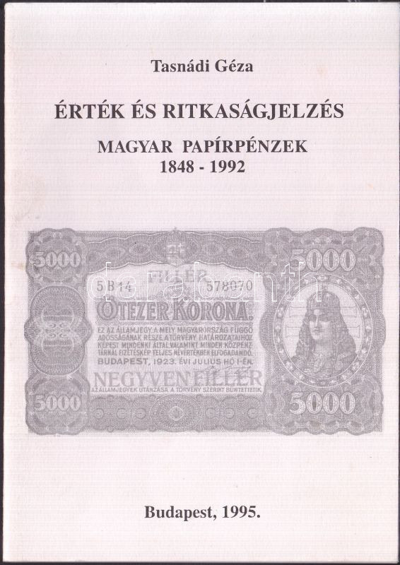 https://www.darabanth.com/en/133-Online-auction/133.0/Numismatics/Numismatics-Literature~400122/Tasnadi-Geza-Ertek-es-ritkasagjelzes--Magyar-papirpenzek-1848-1992~II380613