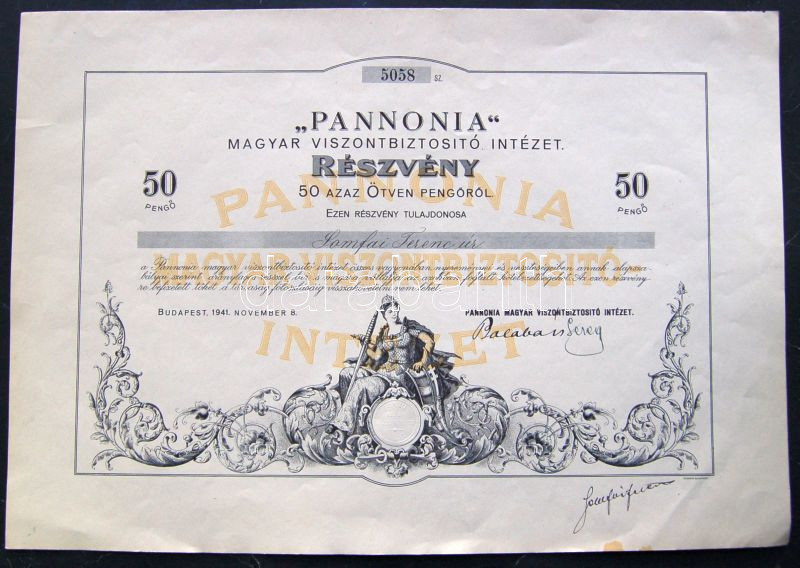 https://www.darabanth.com/en/133-Online-auction/133.0/Numismatics/Shares-Securities-and-Tickets~400126/1941-Pannonia-Magyar-Viszontbiztosito-Intezet-reszvenye-50P-rol~II378649