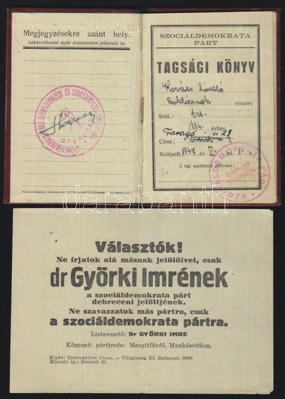 https://www.darabanth.com/en/133-Online-auction/133.0/Other-collectibles/Documents~260/1947-Szocialdemokrata-Part-tagsagi-konyv-tagsagi-belyegekkel-plus-SZDP-roplap~II380511