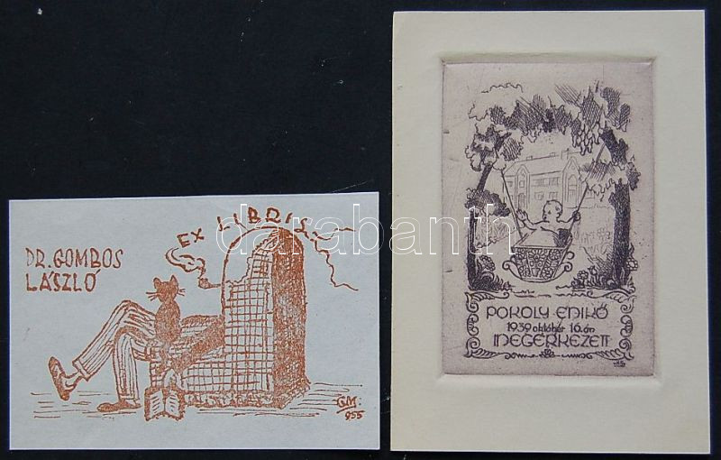v. H. Gy jelzésű rézkarc 10x14 cm és GM. jelzésű ex libris