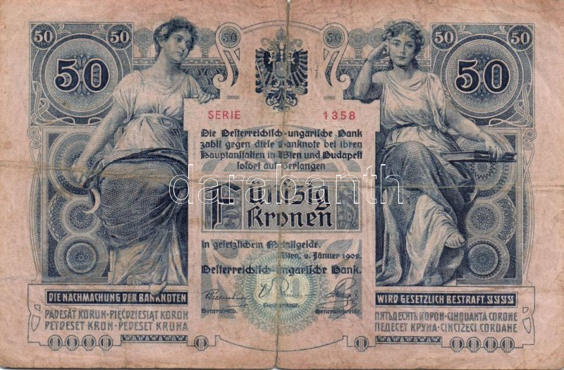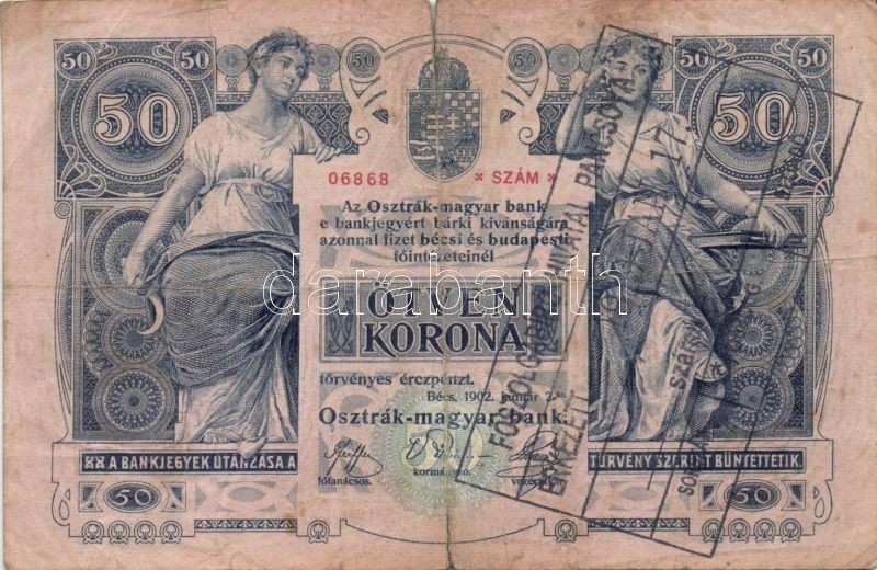 https://www.darabanth.com/en/134-Online-auction/134.0/Numismatics/Hungarian-Banknotes~444532/1902-50K-teglalap-alaku-rautott-nagyalaku-lila-Foszolgabiro-Hivatal-Pancsova-1919-jan17~II382854