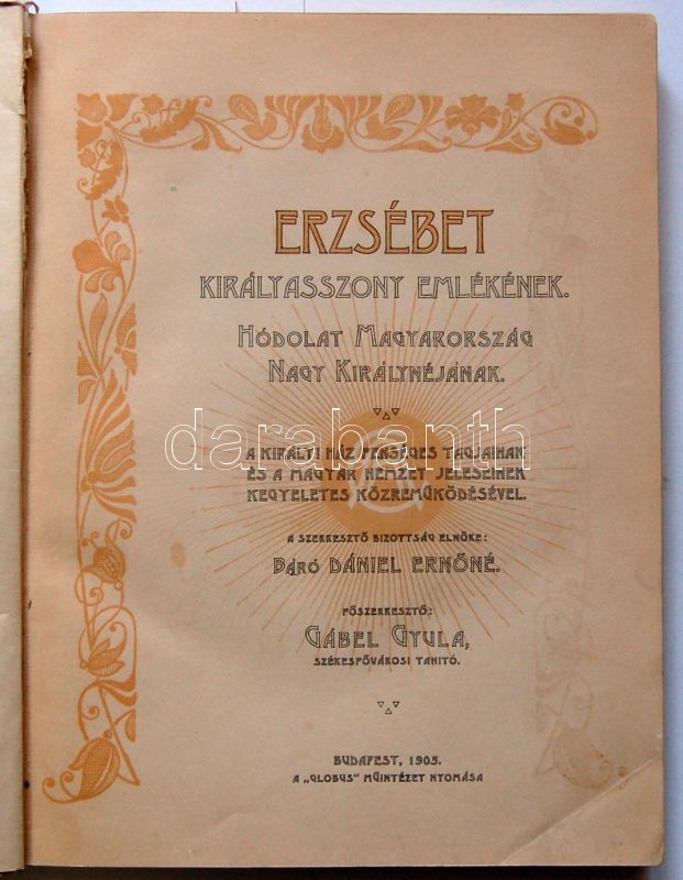 Erzsébet királyasszony emlékének. Hódolat Magyarország nagy királynéjá... https://www.darabanth.com/en/134-Online-auction/134.0/Other-collectibles/Books-other-rarities~199/Erzsebet-kiralyasszony-emlekenek-Hodolat-Magyarorszag-nagy-kiralynejanak-Szerk-Gabel-Gy~II385145