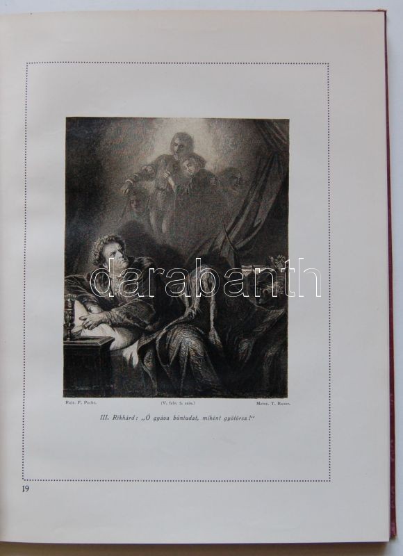 Description: Shakespeare album. Shakespeare élete és költészete, írók tanulmányaiban, képzőművészek festményeiben, rajzaiban, rézmetszeteiben és előadóművészek alakításaiban megvilágítva. Pesti Napló kiadás, Bp. 1910 Dúsan aranyozott dombornyomásos kiadói egészvászon díszkötésben. Szép állpotban