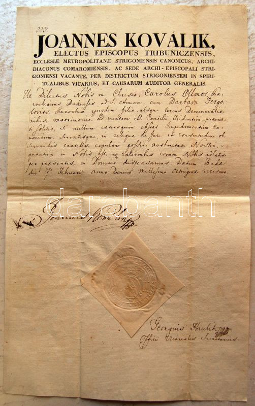 https://www.darabanth.com/en/134-Online-auction/134.0/Other-collectibles/Historical-documents-manuscripts~184/1820-Kinevezesi-okmany-Kovalik-Janos-es-Haulik-Gyorgy-ersekek-sajat-kezu-alairasaival~II384889