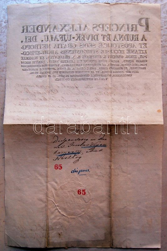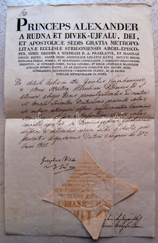 1822 Kinevezési okirat Bélik József püspök és Rudnyánszky József püspö... https://www.darabanth.com/en/134-Online-auction/134.0/Other-collectibles/Historical-documents-manuscripts~184/1822-Kinevezesi-okirat-Belik-Jozsef-puspok-es-Rudnyanszky-Jozsef-puspok-sajat-kezu-alaC3~II384927