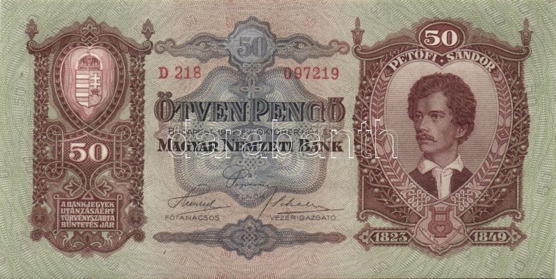 1932. 50P (3x) egymásutáni sorszámmal T:I