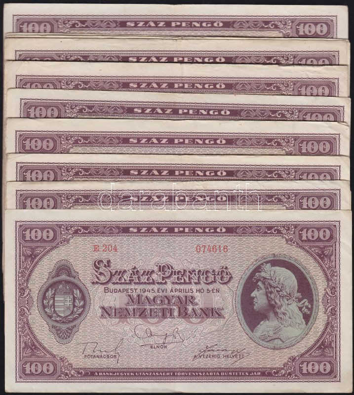 https://www.darabanth.com/en/135-Online-auction/135.0/Numismatics/Austro-Hungarian-and-Hungarian-Banknotes~400024/1945-100P-23x-Tvegyes~II389251