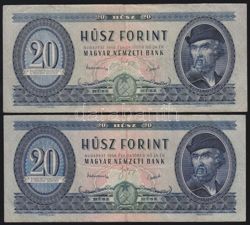 https://www.darabanth.com/en/135-Online-auction/135.0/Numismatics/Austro-Hungarian-and-Hungarian-Banknotes~400024/1949-20Ft-2x-TIII~II386986