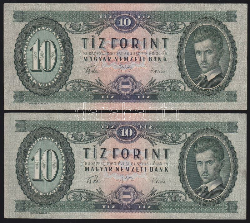 https://www.darabanth.com/en/135-Online-auction/135.0/Numismatics/Austro-Hungarian-and-Hungarian-Banknotes~400024/1960-10Ft-2x-TII-II-~II387033