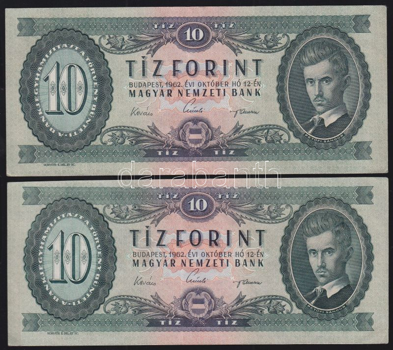 https://www.darabanth.com/en/135-Online-auction/135.0/Numismatics/Austro-Hungarian-and-Hungarian-Banknotes~400024/1962-10Ft-2x-TII-IIplus~II387039