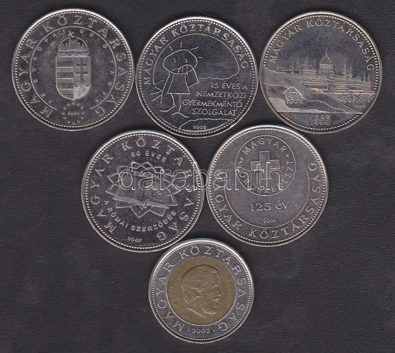 https://www.darabanth.com/en/135-Online-auction/135.0/Numismatics/Coins-with-Hungarian-Mintmark~400035/2002-100Ft-Kossuth-plus-2004-2007-50Ft-5db-klf-emlekverete-T1-2~II386972
