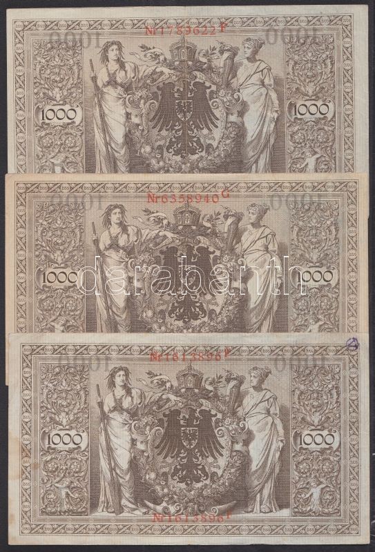 https://www.darabanth.com/en/135-Online-auction/135.0/Numismatics/Foreign-Banknotes~400023/Nemet-Birodalom-1910-1000M-3x-hetjegyu-sorszammal-TIII~II386714