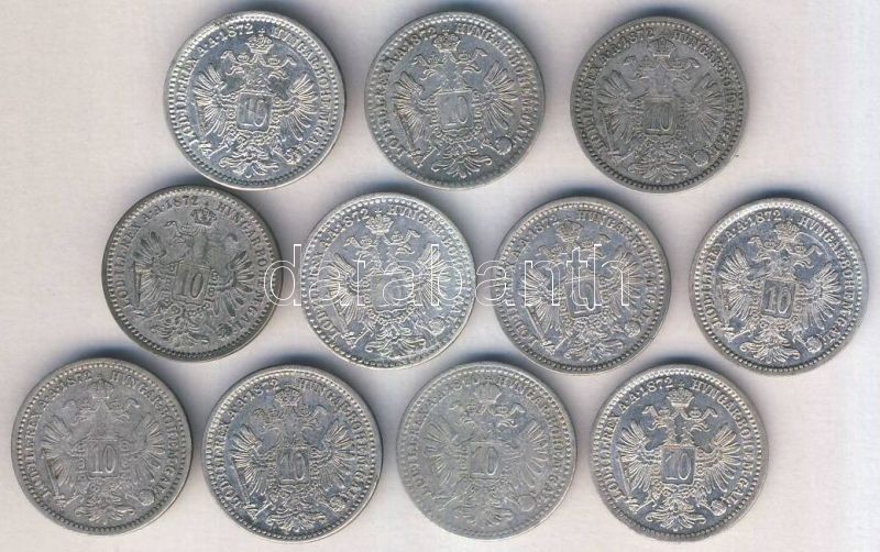 Ausztria 1870-1872. 10h (11x) Ag T:vegyes