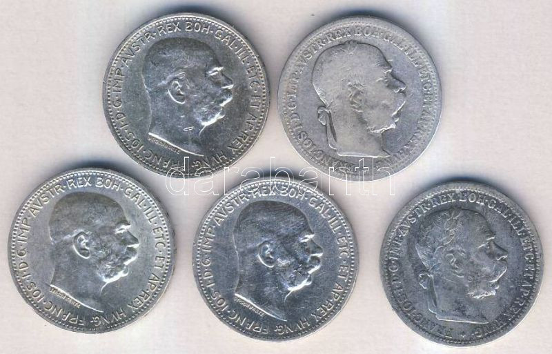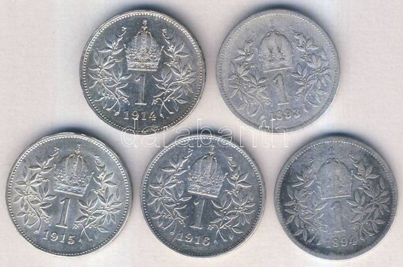 Ausztria 1893-1916. 1K (5x) klf évszámmal Ag T:vegyes