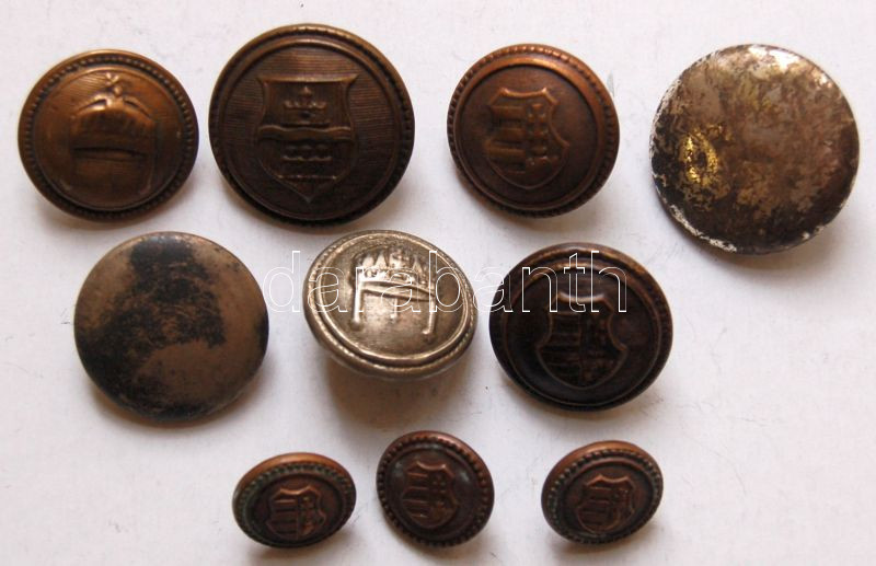 https://www.darabanth.com/en/135-Online-auction/135.0/Numismatics/Hungarian-Commemorative-Medals-and-Plaques~400031/10db-kulonfele-katonai-egyenruha-gomb-koztuk-koronas-gombok-Kossuth-cimeres-gombok~II386661