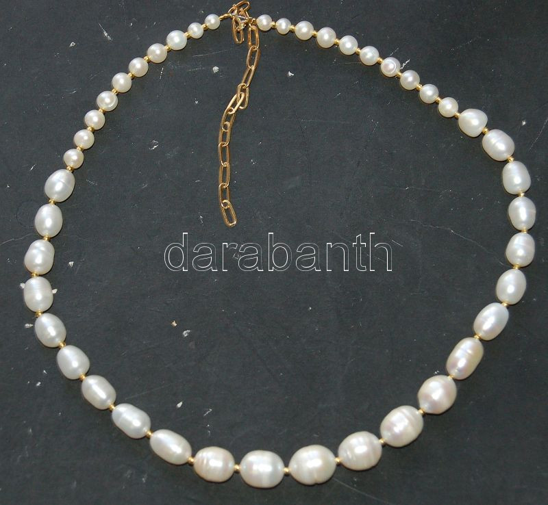Édesvízi tenyésztett gyöngynyaklánc aranyozott ezüst (Ag) szerelékkel
