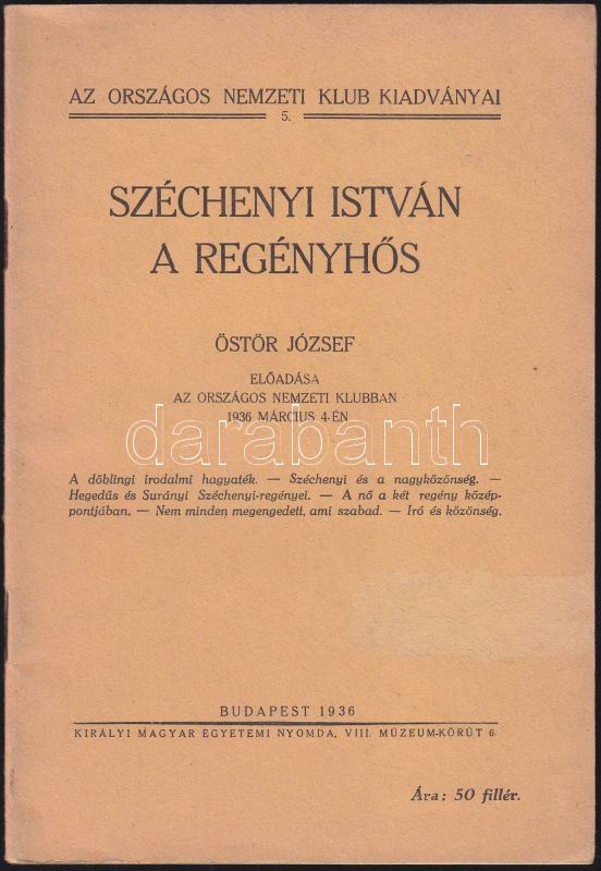 https://www.darabanth.com/en/136-Online-auction/136.0/Other-collectibles/Books-Achitekture-Art~300019/orszagos-Nemzeti-Klub-kiadvanya-Szechenyi-Istvan-a-regenyhos-Bp-k-M-Nyomda-1936-30p~II393442
