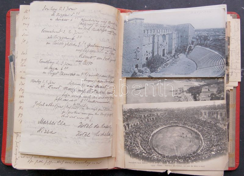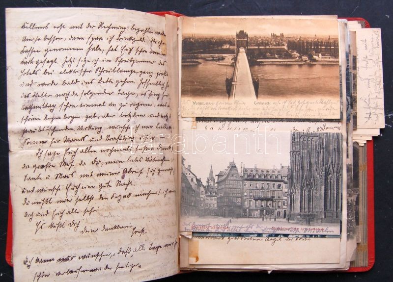 1908 Németország és Franciaország emlékkönyv körutazásról. kb 50 db né... https://www.darabanth.com/en/136-Online-auction/136.0/Other-collectibles/Historical-documents-manuscripts~213/1908-Nemetorszag-es-Franciaorszag-emlekkonyv-korutazasrol-kb-50-db-nemet-nyelvu-level-C3~II391295