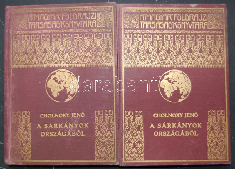Magyar Földrajzi Társaság Könyvtára: Cholnoky Jenő: A sárkányok országából I.-II, aranyozott kiadói egészvászon kötésben, Franklin, Bp.