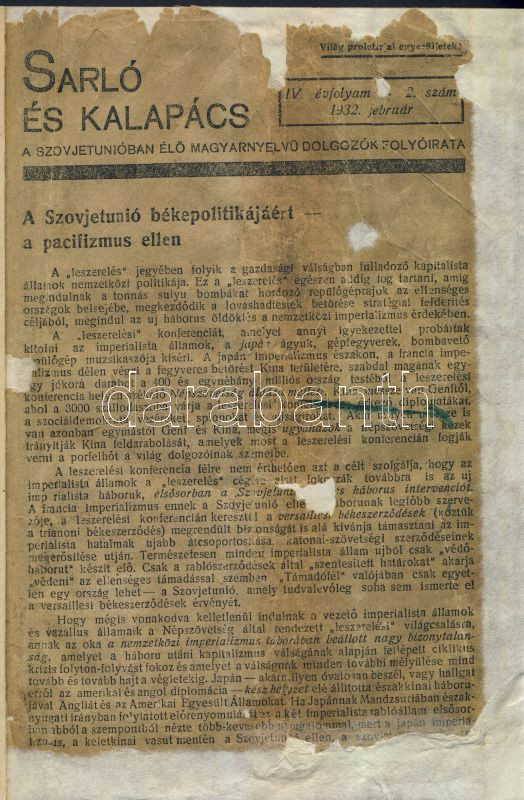 https://www.darabanth.com/en/137-Online-auction/137.0/Other-collectibles/Printed-Materials~292/1932-Sarlo-es-kalapacs-a-Szovjetunioban-elo-magyarajku-dolgozok-lapja-IV-evf-2-szam-nC3~II394846