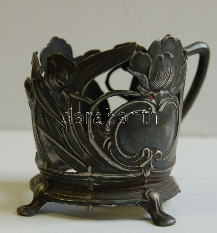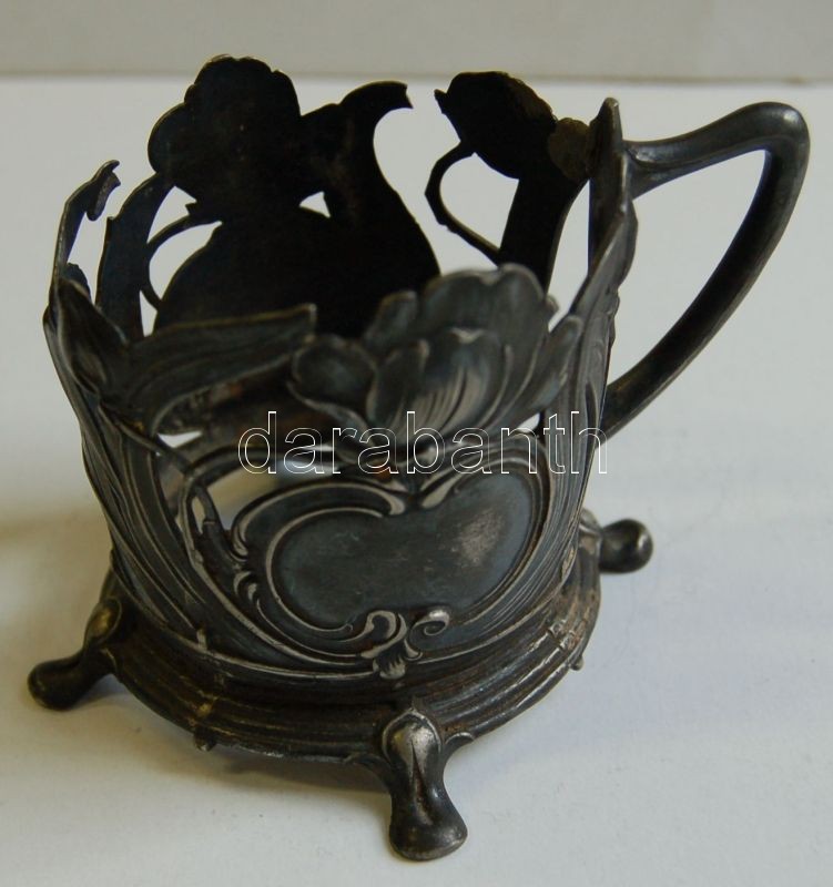 Szecessziós ón pohárfogó (apró hibák) / Art nouveau tin glass holder ...