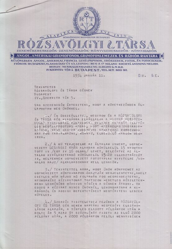1934 Ráth-Végh István és Rózsavölgyi és Tsa cég közötti levélváltás 13... https://www.darabanth.com/en/138-Online-auction/138.0/Other-collectibles/Historical-documents-manuscripts~400019/1934-Rath-Vegh-Istvan-es-Rozsavolgyi-es-Tsa-ceg-kozotti-levelvaltas-13-levele-kozte-az~II401553