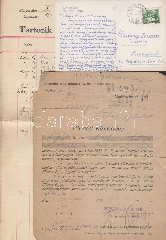 https://www.darabanth.com/en/138-Online-auction/138.0/Other-collectibles/Historical-documents-manuscripts~400019/Tornyai-Janos-festo-hagyateka-penztari-elismerveny-elszamolasok-kepeslap-levelek-kere~II401377