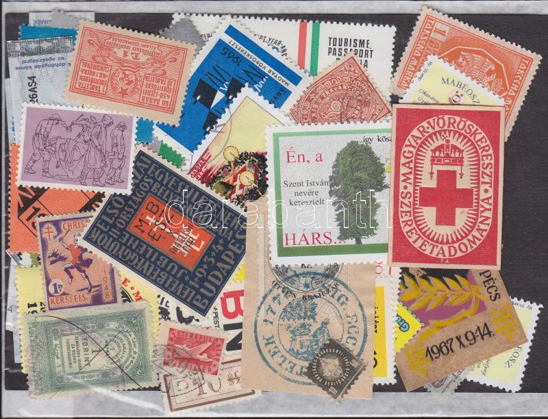 60 darabos parafilatéliai összeállítás: zárjegyek, levélzárók stb.