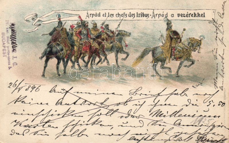 https://www.darabanth.com/en/138-Online-auction/138.0/Postcards/Emperor-Politician~400103/1896-Arpad-and-the-seven-chiefs-Ezredeves-Orszagos-Kiallitas-litho-s-Cserna~II398985