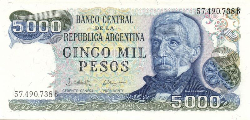 Argentína 1973-76. 10P + 1974-75. 50P + 10P + 1977-82. 500P + 1977-83. 5000P + 1976-83. 10.000P + 1983-85. 1P + 5P + 50P T:I (egyikük II)