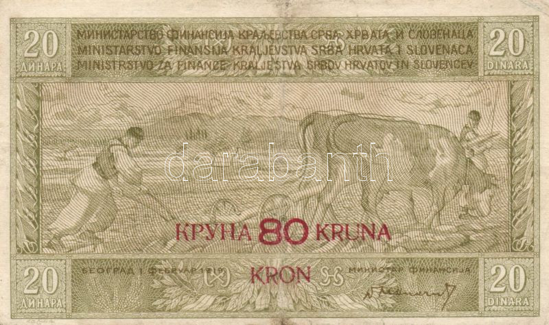 https://www.darabanth.com/en/139-Online-auction/139.0/Numismatics/Foreign-banknotes~10012/Jugoszlavia-1919-20D-80Kr-felulnyomassal-TIII-restauralt~II403971