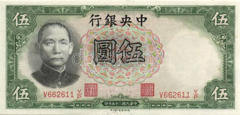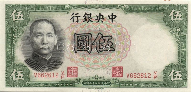 https://www.darabanth.com/en/139-Online-auction/139.0/Numismatics/Foreign-banknotes~10012/KinaKoztarsasagCentral-Bank-1936-5Y-4x-egymasutani-sorszammal-TI~II405347